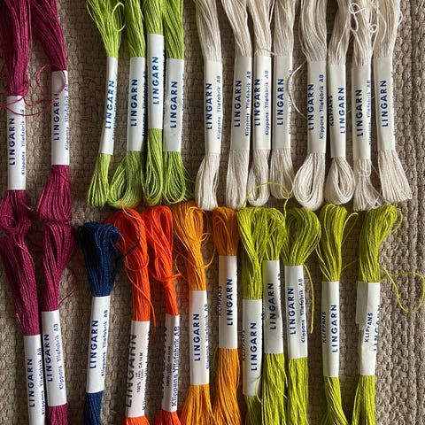 42 st små rullar med sy-tråd i olika färger, se bild säljes