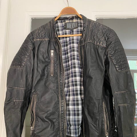 Säljer en snygg skinnjacka från Jofama. Den har en cool krage och dragkedja framtill. Perfekt för vår och höst. Den har långa ärmar och ribbade muddar. jackan är i bra skick och passar perfekt för en casual look.