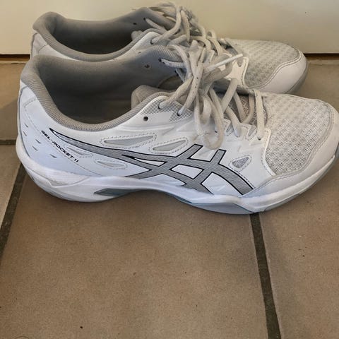 Skorna är vita med orangea och mörkblå detaljer. Ovan del i ventilerande mesh med syntetiska förstärkningar. Yttersula med mönster anpassat för bra grepp på tennisbanor. Passar för racketsport och annan inomhus- eller utomhusträning där stabilitet och dämpning behövs.