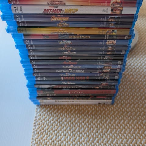 Samling med blandade filmer på DVD och Blu-ray.