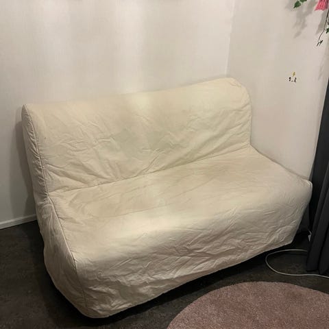 Bäddsoffa 140 x 200 cm. Klädseln tas av och den fälls smidigt ut till en säng, 140 cm bred. Klädseln är tvättbar. Smidig att ha i tex gästrum.