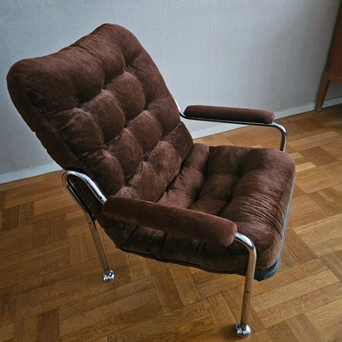 Fåtölj designad av Boije/Zimmerman för dux. Sliten men i gott skick. Se bilder.