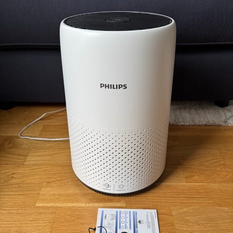 Säljer en Philips Series 800 luftrenare, modell AC0820/10, i vitt utförande. Den är sparsamt använd och i mycket bra skick, i princip som ny. Luftrenaren är framtagen för att förbättra luftkvaliteten inomhus genom att effektivt filtrera bort damm, pollen och andra partiklar, vilket gör den väl lämpad för sovrum, kontor eller mindre vardagsrum.