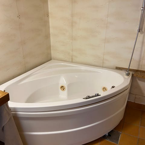 Jacuzzi bubbelbadkar i vinröd färg. Badkaret är utformat som ett kar med inbyggda massage-/bubbelmunstycken i sidorna. Utrustat med blandare, handtag för vattenreglering samt kontrollpanel på badkarskanten för styrning av funktioner. Passar för inbyggnad i badrum eller relaxavdelning där man önskar ett runt bubbelbadkar.
