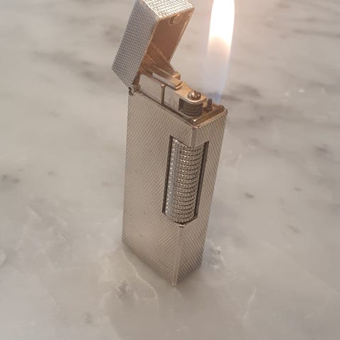Nanfang Tu Chang tändare i metall med inbyggd kompass på framsidan. Framsidan har även ett upphöjt motiv av en segelbåt/junk. Tändaren har ett gångjärnsförsett lock upptill och fylls med gas i botten. Färg i huvudsak metall/silver med guldfärgade detaljer runt lock, botten och ovankant. Lämplig som bruksföremål eller samlarobjekt för den som är intresserad av tändare med nautiskt tema. Detta är en tändare med en inbyggd kompass och ett graverat motiv av en kinesisk djonk. Den kan klassificeras som ett samlarobjekt på grund av sin unika design och funktioner.