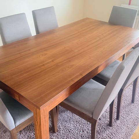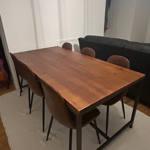 Rejält och stabilt matbord i ek .