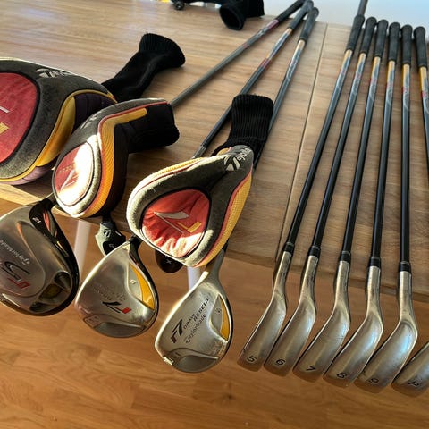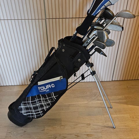 Cobra junior golfset med flera klubbor och bärbag i orange och svart. Setet innehåller olika klubbor, däribland driver, Spoon, järnklubbor 7, 9, Sw och putter, anpassade för juniorer. Medföljer gör även headcovers i orange. Passar för yngre spelare som behöver ett komplett set med lättare klubbor och juniorbag.