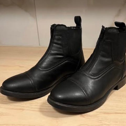 Ridskor i syntetläder, strl 38. Fint skick. Finns i Fruängen, endast avhämtning. Har swish.
