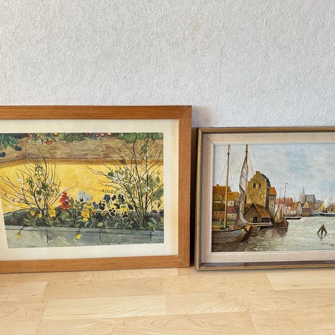 Två tavlor tryck i vackra träramar