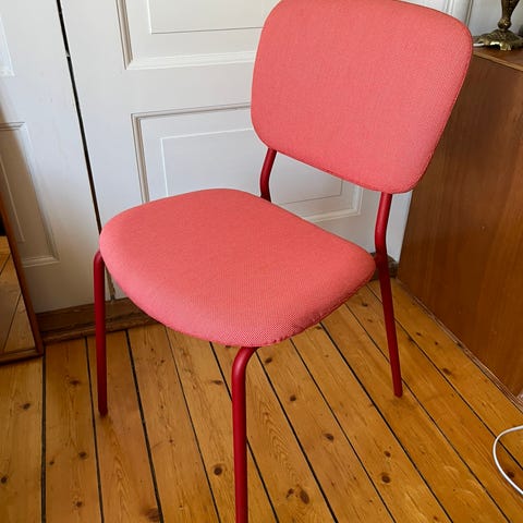 Orange plast och krom stol, stacking chair. Sitthöjd 44cm
