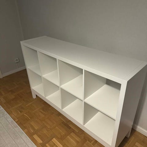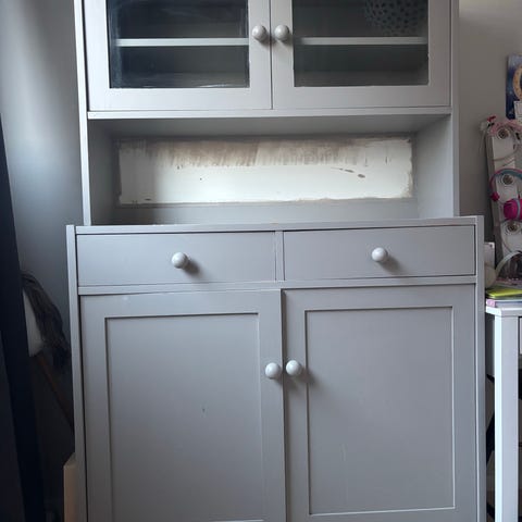 vitt skåp med lådor och dörrar