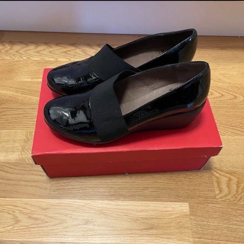 Eleganta lackskor med en klassisk design. Skorna har en bekväm blockklack och en stilren rem över foten.