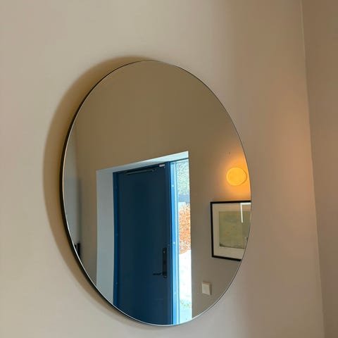 Rund spegel från Mio utan ram. Spegeln har rund form och passar för placering i exempelvis hall, sovrum eller vardagsrum.