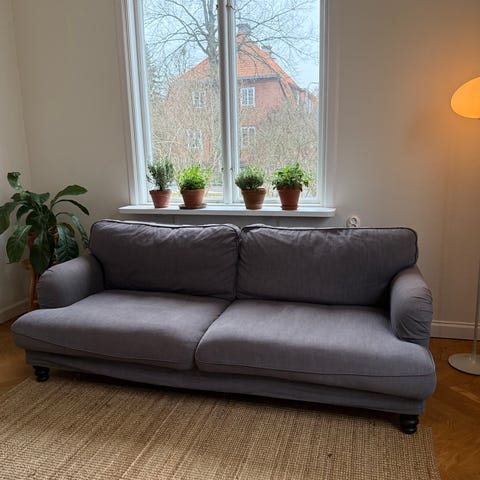 Howardsoffa beige m nytt dun i kuddarna