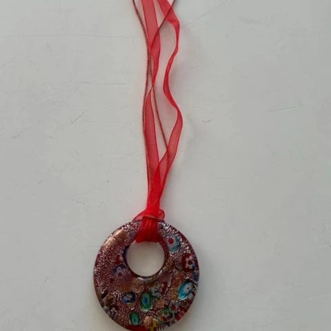 Tillverkat med lampwork-teknik där glas smälts över låga och formas för hand, vilket gör varje smycke unikt.