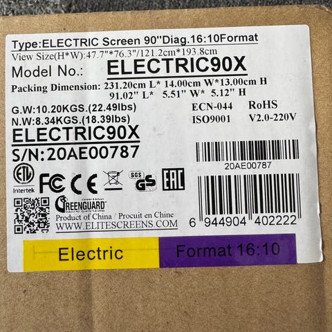 Projektorduk 104" 230x129 cm , elektrisk styrd kanonskick