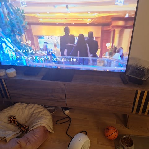 På tv-bänkens baksida finns hål för sladdar att gå igenom för din elektronik