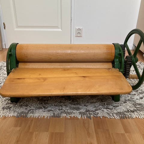 Mangel från tidigt 1900-tal, osäker på duken skick men det går säker att byta ut.