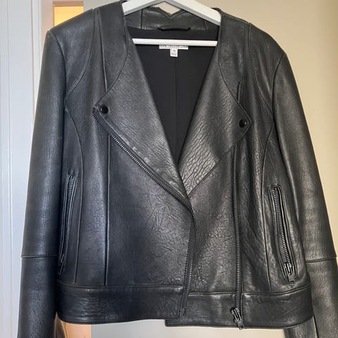 Jättefin tunn vår skinnjacka i storlek 38 med metallblixtlås. Modern modell. Jättebra skick, använt några gånger, som ny!!!
