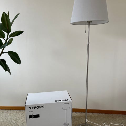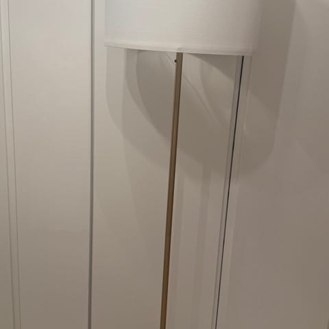 Fin golvlampa med 3 stegs ljusval. Nya linne skärmar.