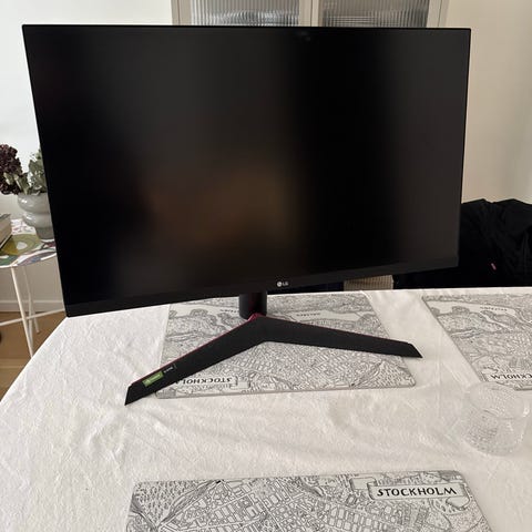 MSI datorskärm med 27 tum skärmstorlek i svart utförande. Skärmen står på ett stabilt stativ och har anslutningar på baksidan. Medföljer strömadapter och kablar. Lämplig som bildskärm till stationär dator för arbete, studier eller spel.