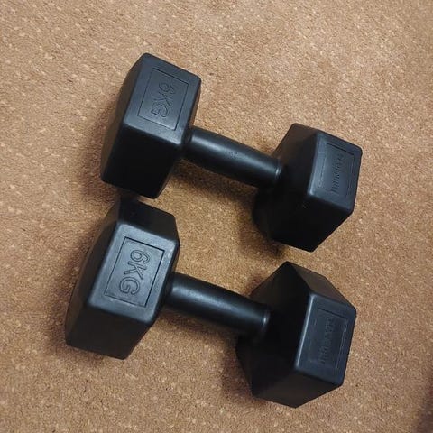 Justerbart viktset med kettlebellhandtag, dumbbell handtag och lösa vikter. Basvikten är 2 kg, märkt på kettlebellkroppen. Till setet hör två extra vikter om 1,5 kg vardera, som kan fästas för att öka den totala vikten. Delarna är tillverkade i plast med fyllning och är avsedda för hemmaträning, till exempel styrketräning, funktionell träning och rehabiliteringsövningar. Setet inkluderar även en hållare/ställning för förvaring av vikterna.