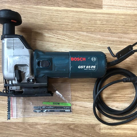En bosch GST 90 med sladd. Riktigt bra maskin. Går att såga upp och ner med för att få en grym precision.