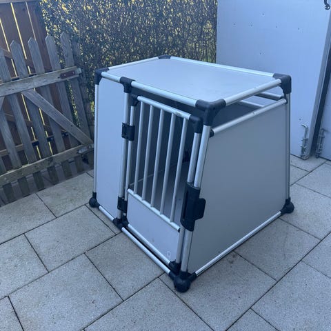 Hundbur metall, modell större. Ca-mått 1,10cm×45cm×50cm. Ögonmått. Pris 500kr