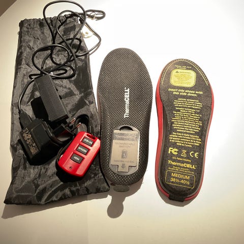 Therm-ic värmesulor med laddare. Storlek 41-43. Inkluderar ett par elektriska värmesulor och nätadapter för laddning. Sulorna är avsedda att placeras i skor för att ge extra värme vid kallt väder. Levereras tillsammans med en förvaringspåse och fjärrkontroll.