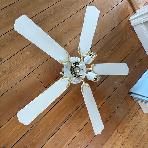 En fin takfläkt med belysning. Finns i Sjöbo för avhämtning. En av ljuskällorna måste bytas annars fungerar allt som det ska.