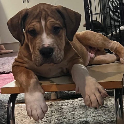 Mamma är en släthårig tax (väger 9 kg) aldrig jagat utan mer en familjehund . Pappa är en mellan Xoloitzcuintle (Mexikansk nakenhund på 8 kg) Läs gärna på om rasen.
