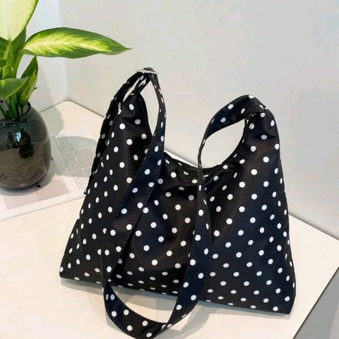 Prickig axelremsväska vit med svarta prickar