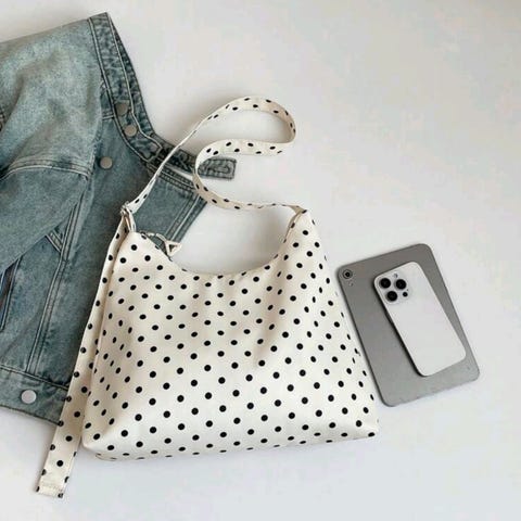 Fin axelremsväska svart med vita prickar