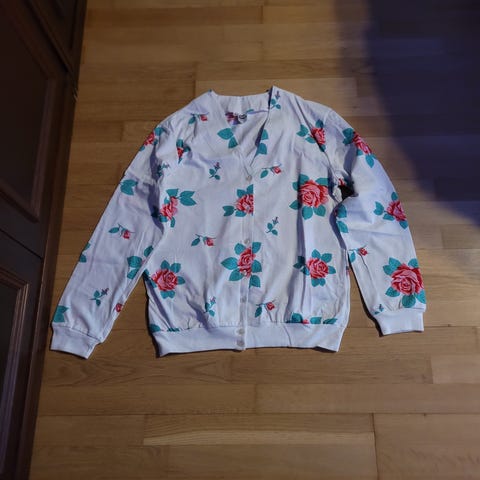 Tröja med krage och rosmönster . storlek 38-40 .