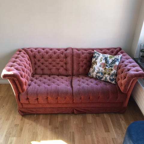 Soffgrupp i vinröd plysch.