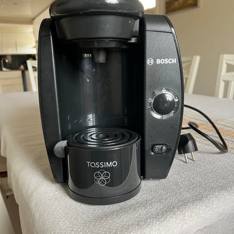 Bosch Tassimo kapselmaskin i rosa och vitt utförande. Maskinen är avsedd för bryggning av varma drycker med Tassimo-kapslar. Utrustad med avtagbar vattentank på baksidan och droppbricka framtill. Elanslutning med vanlig stickkontakt. Passar för användning i kök, exempelvis för kaffe, te eller chokladdrycker beroende på kapseltyp.