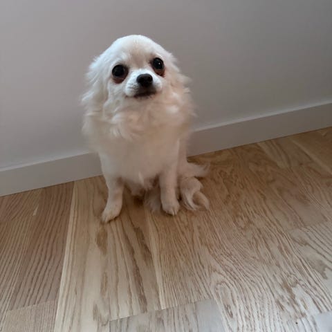 Hon är en renrasig chihuahua, korthårig.