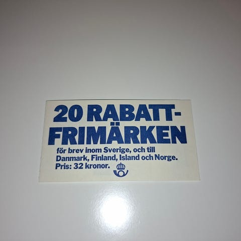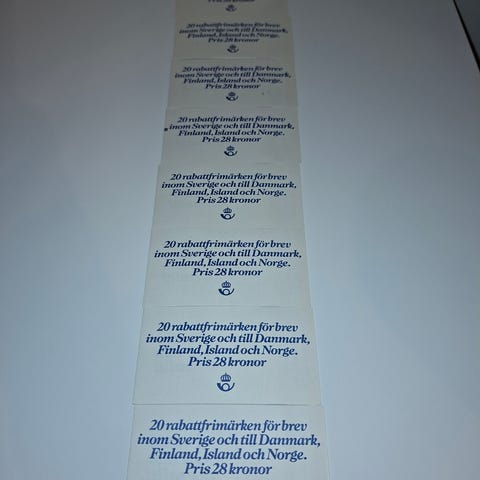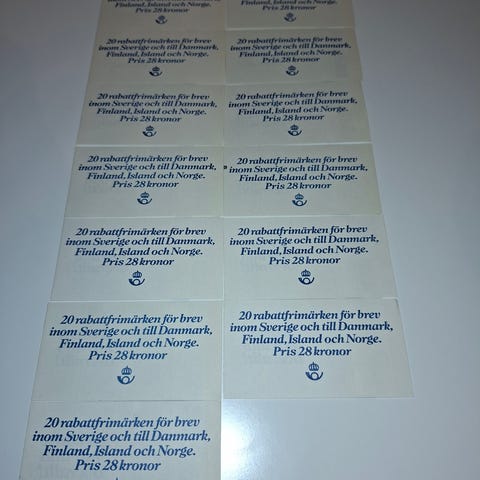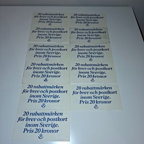 5 st häften med 20 rabattfrimärken. Avsett för brev inom Sverige.