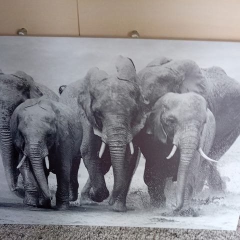 Tavla med motiv av tiger i närbild. Mörka, naturinspirerade färger med fokus på tigerns ansikte bakom grässtrån. Passar som väggdekoration i exempelvis vardagsrum, sovrum eller kontor. Material canvas och storlek 70x50cm