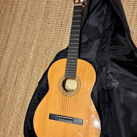 Alhambra 1p cedro i gott skick säljes. Jag är ende ägare av gitarren och köpte den i en musikaffär i Gävle ca 2001. Då gitarren har några år på nacken finns det en del dings och repor, det rör sig dock om små saker som knappt syns. Det som märks är att lacken har vitnat på vissa ställen. Den spelar bra och starkt, det enda jag märkte nu är jag fick en liten smula strängsurr på band 11 på tjocka E-strängen, borde vara lätt fixat om man vill. Den intonerar helt ok tycker jag, men går kanske att få ännu bättre om man byter sadelben. Just nu sitter det Aqulia Alchemia normal tension på, och dom har suttit där i sju år utan att gå av eller slitas nämnvärt, låter fortfarande bra! Banden är i bra skick iom att det är en nylonsträngad gitarr.