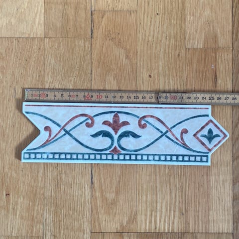 14.8 meter helt nytt, golvsockel i jugendstil.