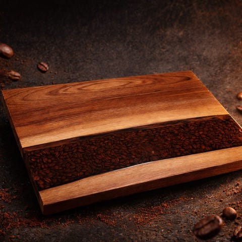 Skärbräda eller serveringsfat av valnöt och epoxy resin.