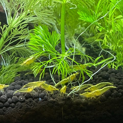 Caridina Crystal Red som förökar sig i massor.