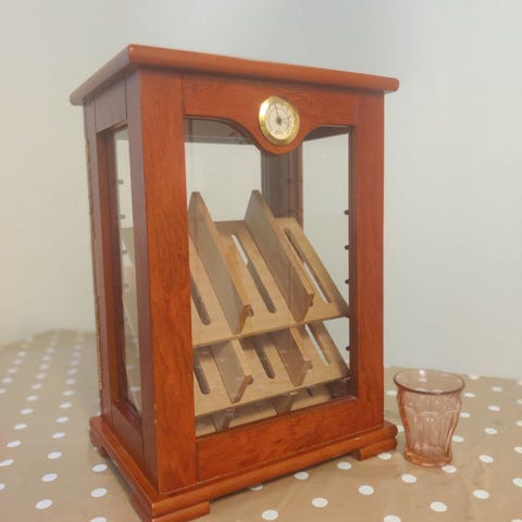 Habanos humidorskåp i mycket fint skick, nyckel finns, belysning fungerar, komplett med fuktare.
