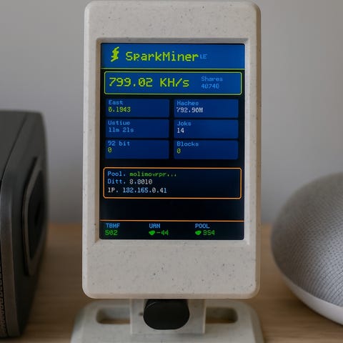 Beskrivning: Kompakt displayenhet som visar realtidsdata från kryptomining. Med denna enhet så är man med i det så kallade Bitcoin lotteriet, Stilren specklad design med matchande fot.
