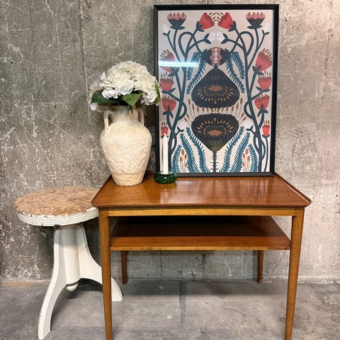 Vintage bord från 50/60-talet i mkt bra skick metall underrede för tidningar/böcker etc. Mått på bordet höjd 48 bredd 60 djup 35. Hämtas i Hornstull el Bromma