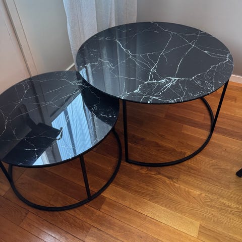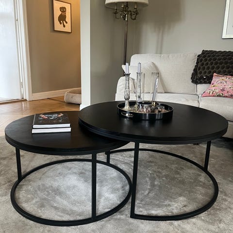 Soffbord från Mio AmaraSatsbord, H 35 Ø 60/H 45 Ø80 cm.