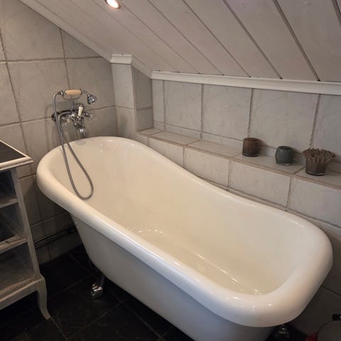 Klassiskt badkar från Svedbergs med slitstark emalj. Längd: 160 cm. Halvfronten gör det även lätt att komma åt för att städa.