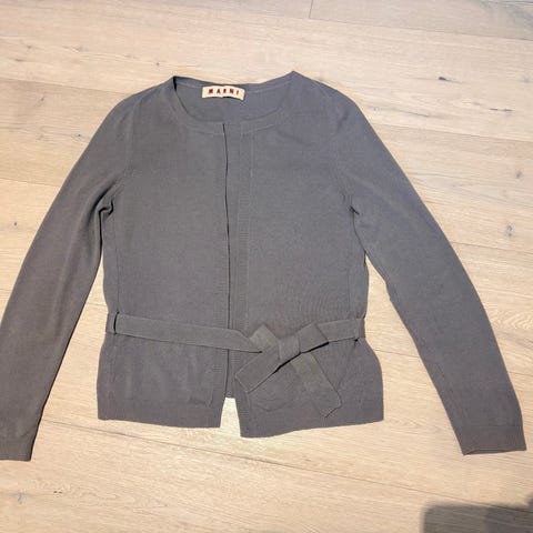 Ljus och mörkgrå kashmir kofta i storlek M