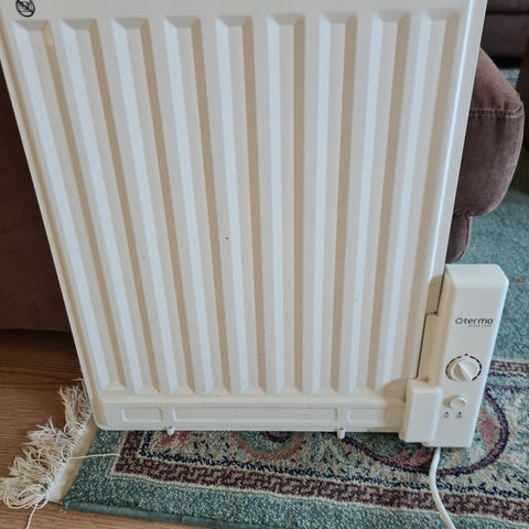 Säljer en oljefylld elradiator (230 V / 800 W) med golvfästen. Ger jämn och tyst värme och kopplas direkt i vanligt eluttag.